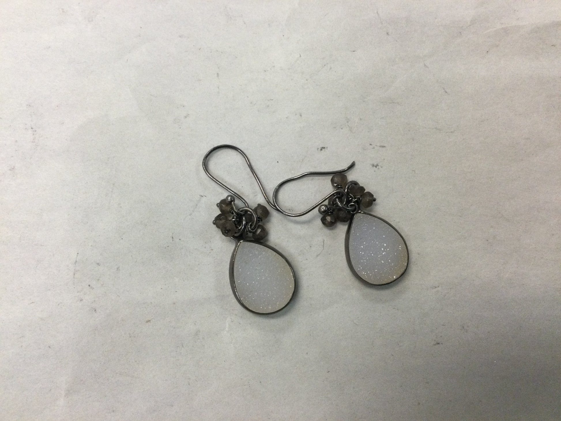Teardrop Druzy Earrings With Black Metal And Grey Beads