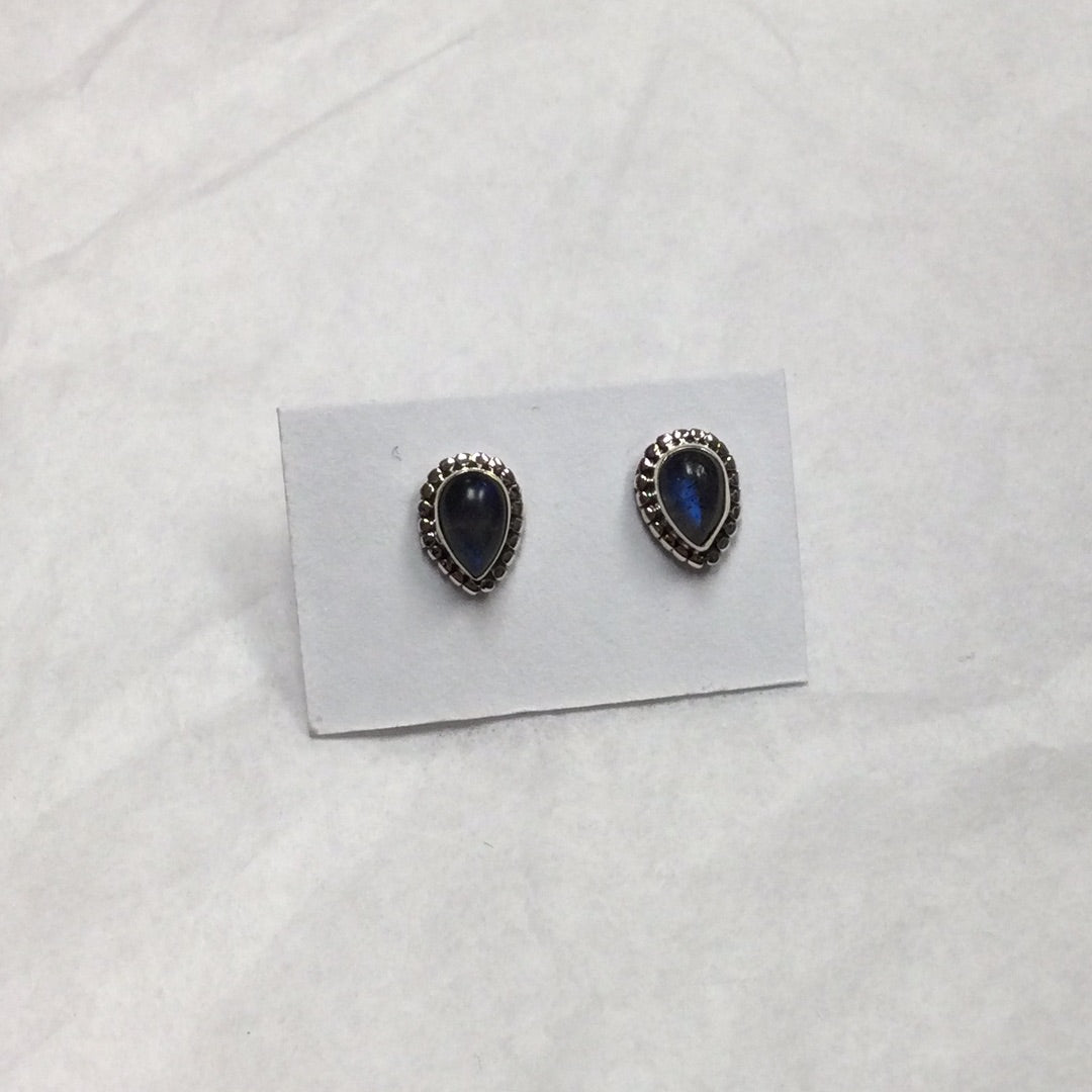 Teardrop Shaped Sterling Silver Crystal Stud Earrings