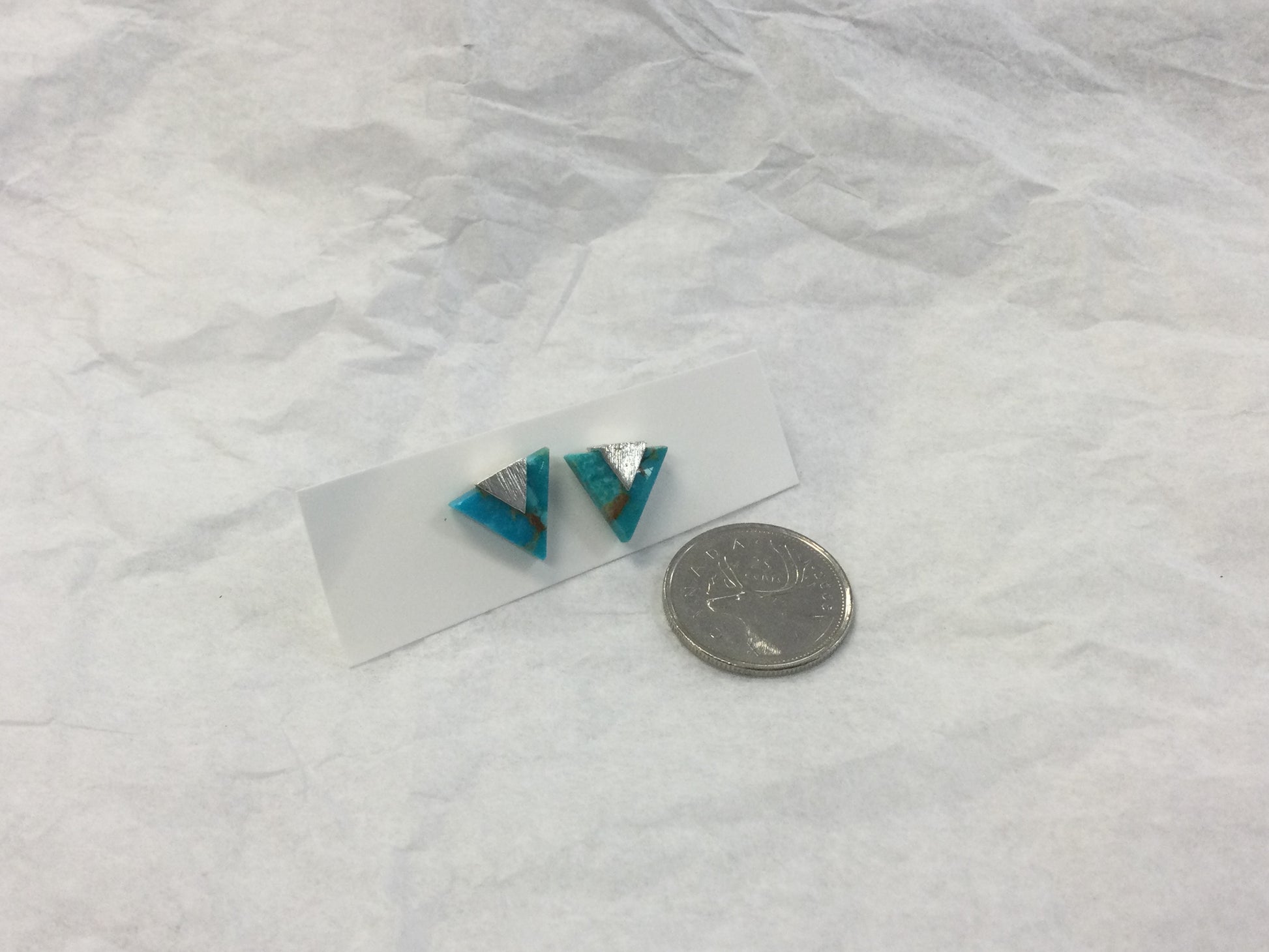 Triangular Turquoise Earrings, Studs with Silver Overlay