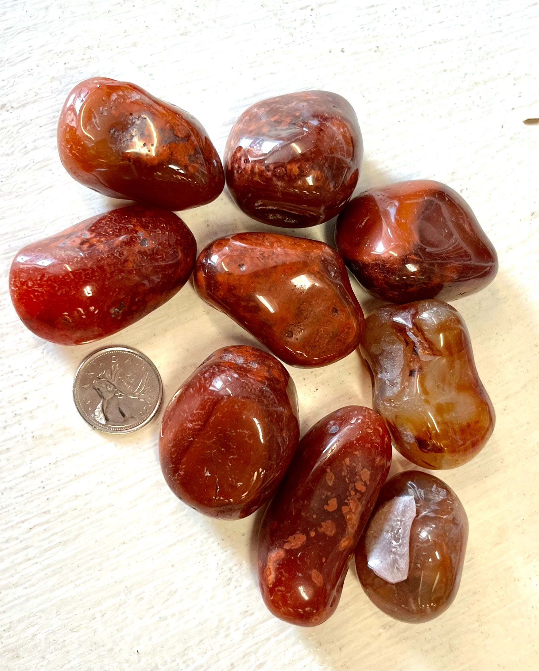 Carnelian is a mineral of the chalcedony family, known for its vibrant energy and metaphysical properties. Carnelian is renowned for its symbolic meanings of warmth, strength, courage and creativity as well as healing properties such as emotional balance and physical health