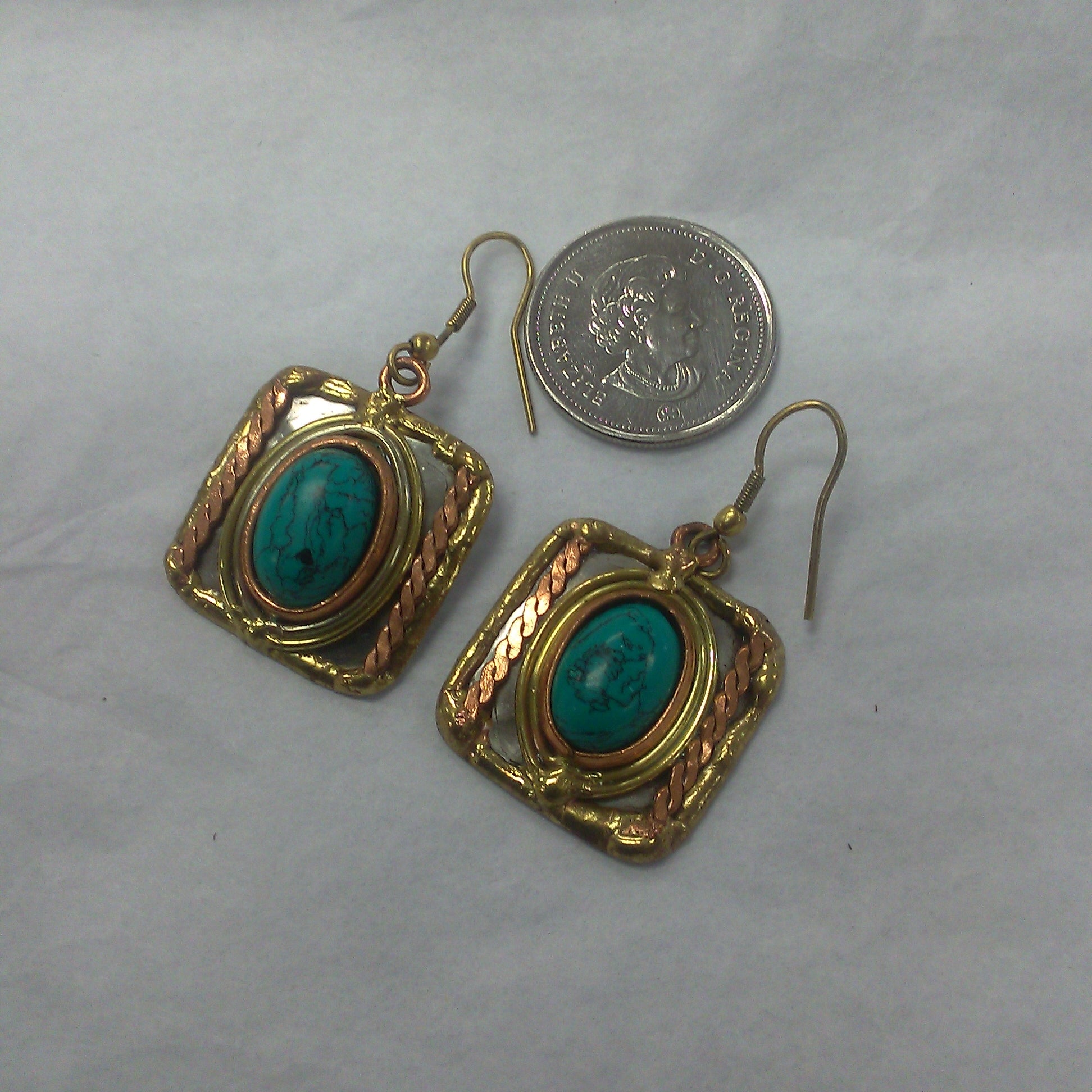 Turquoise trimetal square earring
