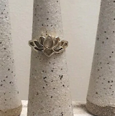 The lotus flower grows and blooms in unlikely conditions, emerging more beautiful than ever. Take heed of this in your own life with this ring.
